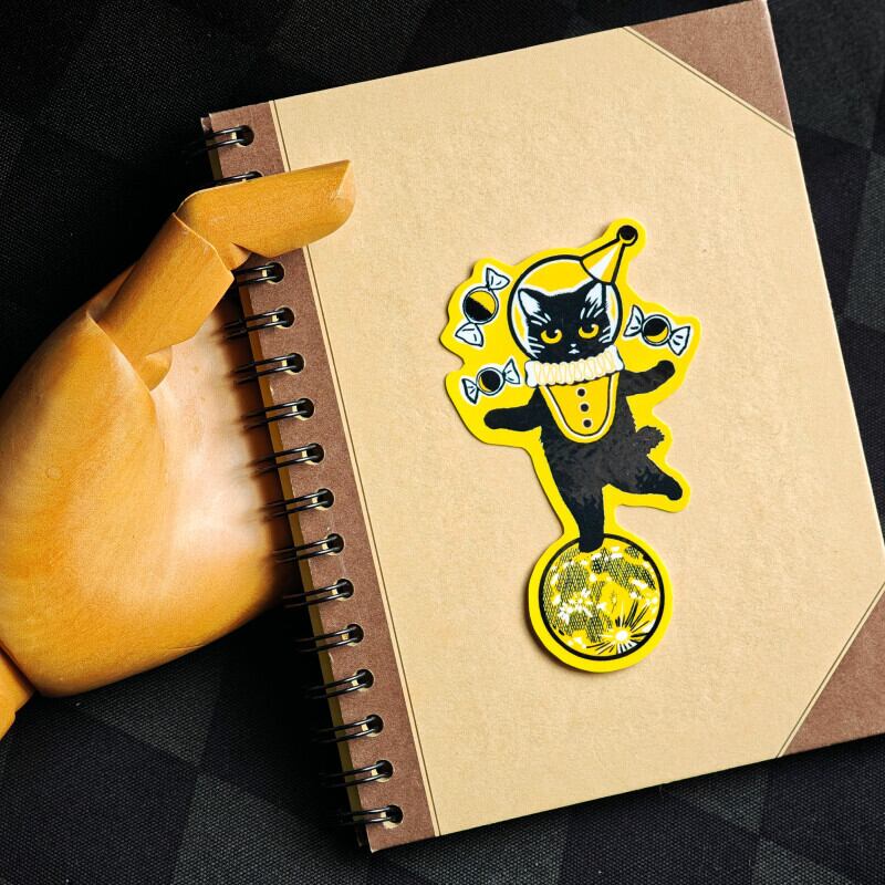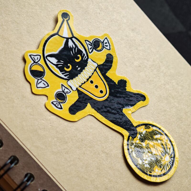 光沢のある素材のステッカー。耐光性・耐水性があり、屋外使用もOKです。