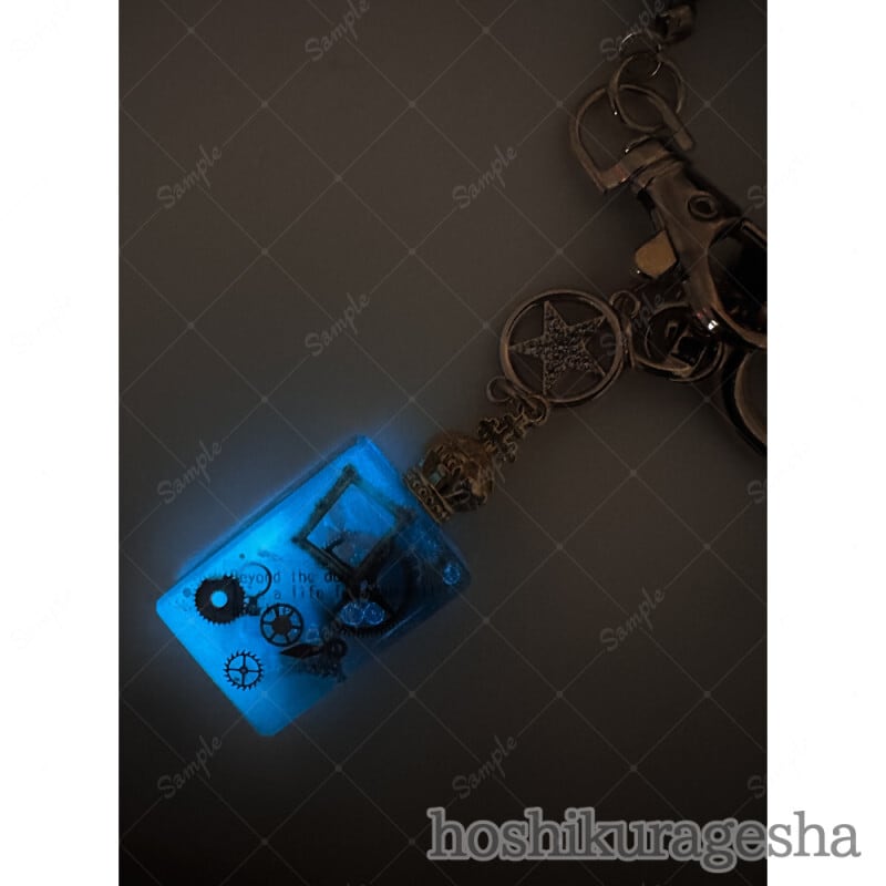 レジンでできたモチーフは蓄光性があり、光を蓄えて暗いところで光ります。